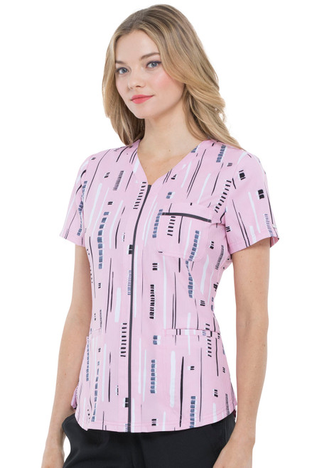 This stylish V-neck top features one chest pocket, and two front welt pockets. Additional design details include sateen ribbon detailing at the chest pocket. Also features side vents for increased comfort and mobility. Modern Classic fit. Center back length: 26"