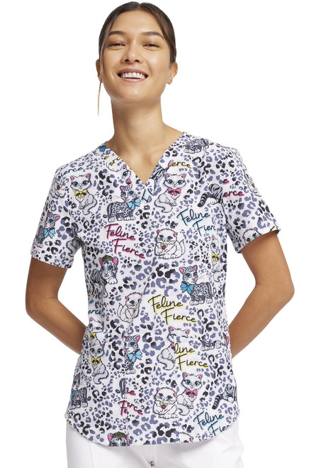 A Modern Classic fit V-neck print top features two patch pockets with a pen stitch on the left pocket. Back yoke, rounded hem and side vents for ease of movement complete the look. Center back length: 26"