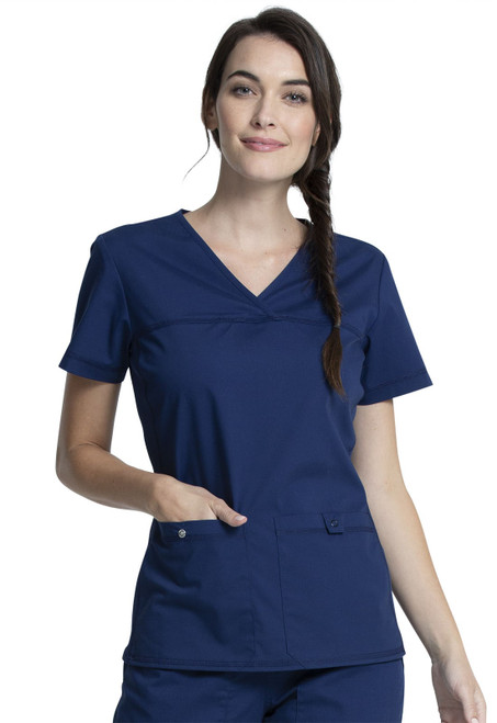 This Modern Classic fit top features stretch side panels in contrast knit which shapes and slims the body. V-neck, front and back yoke seams and hidden kangaroo pocket with in-seam side entry. Center back length: 24 1/2"