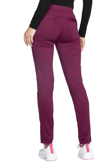 Pull-on styling, a figure-flattering cut, and a full back knit panel make this mid rise tapered leg pant a comfortable and elegant addition to your workwear repertoire. Additional design details include a drawstring front closure, front zip pockets, a cargo pocket at the wearer's right, and welt pockets at the back. Rose gold hardware adds a sophisticated accent to the style. Contemporary fit. Inseam: 30" This elegant linear dobby stretch fabric and comfort jersey knit is a chic combo great for a stylish medical professional that makes a STATEMENT!