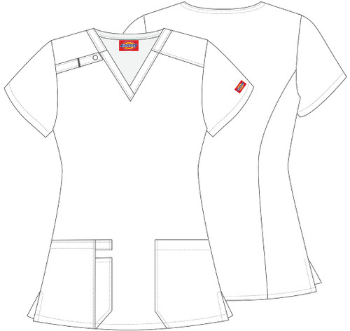 Description 97% Cotton / 3% Spandex Poplin A Contemporary fit V-neck top features two patch pockets and a pen slot. Also featured is a a signature logo tape at the neck, and side vents for ease of movement. Center back length: 26"