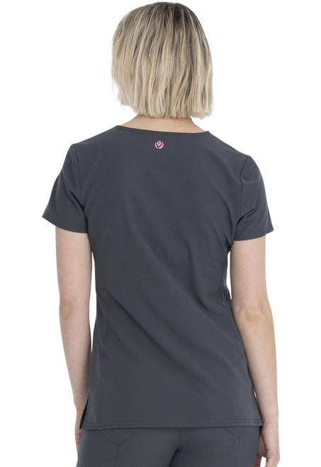 A Contemporary fit print top with shaped v-neck features front and back princess seams plus side vents for ease of movement. There are three pockets: two rounded front patch pockets and one interior pocket on the wearer's right side. Center back length: 26".