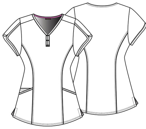 Hearts will warm to the charming details on this Contemporary fit, v-neck print top. It features three front pockets, stylized sleeves, princess seams and side vents. Center back length: 26"