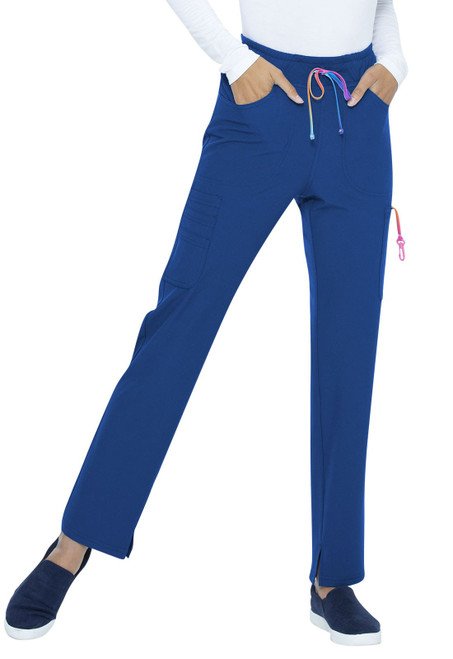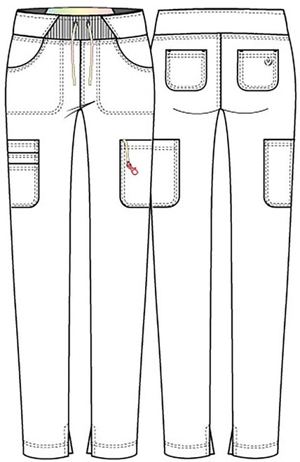This Contemporary fit mid rise pant has an interior elastic waistband with rib-knit inset and rainbow ombre drawstring plus a rainbow ombre inner waist inset. There are six pockets: two front pockets, two cargo pockets and two back pockets. Right cargo pocket features sectional "card slot cargo" construction while left cargo pocket features a hidden rainbow ombre strap with utility clasp. The pant has vents on the inside seam for ease of movement. Tapered leg, 14" opening. Inseam: 27 1/2"