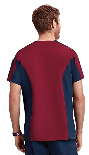 Available in four color-ways this scrub top is becoming a favorite among men in the medical field. This two-tone scrub top has one chest pocket and one shoulder pen pocket.