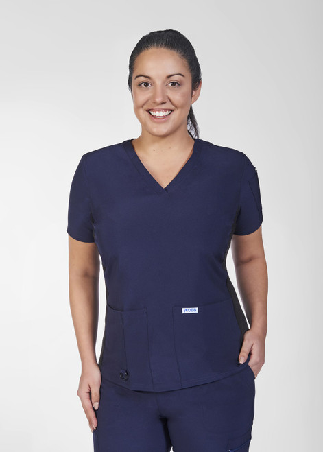 Treat yo' self with a comfy looking top features with flex side panels, comfortable four-way stretch, moisture wicking, anti-wrinkle properties, and ridiculously soft.